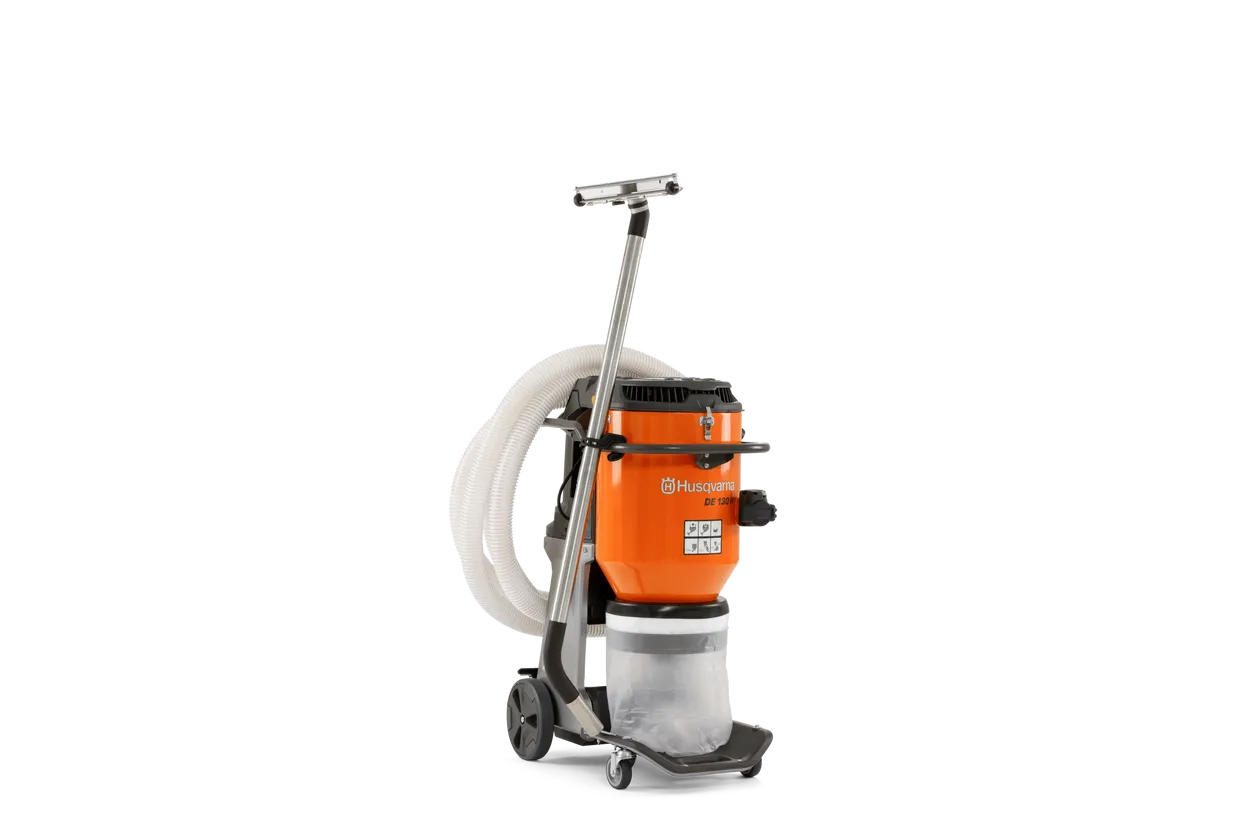 DE 130 H é um extrator de poeira H/HEPA monofásico de alta produtividade concebido para aplicações que demandam mais, como preparação de piso, desbaste, fresagem, escarificação, jateamento, e junto com ferramentas portáteis maiores. A tecnologia Auto-Pulse da Husqvarna garante um fluxo de ar constante e elevado, praticamente sem diminuição da capacidade durante todo o ciclo de trabalho. Com a tecnologia e-flow, a velocidade do ar é ajustada e otimizada automaticamente, economizando até 30% mais energia. Esse resistente extrator de poeira também é fácil de transportar devido a seu tamanho compacto. Seu alto padrão de resistência à água (IPX4) permite descontaminação rápida e eficiente. Além disso, os recursos de conectividade integrados permitem rápido acesso à localização, serviço, status de filtro e outros dados de uso valiosos.
