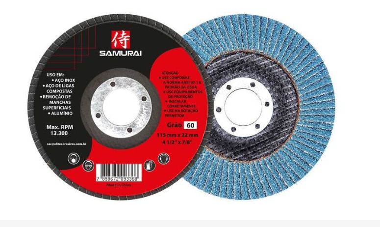 O Disco de Lixa Flap Samurai garante o desbaste e acabamento de qualidade, um produto dois em um ideal para operações de preparação de peças metálicas nos mercados de construção civil e serralheria, usado mais para médias e baixas remoções de materiais.